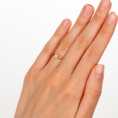 Кольцо с 4 бриллиантами природными, 0.014 карат, огранка круг 17 граней, цвет 2, чистота 2, тип огранки А; Розовое золото 585 пробы.