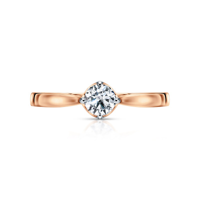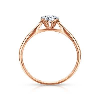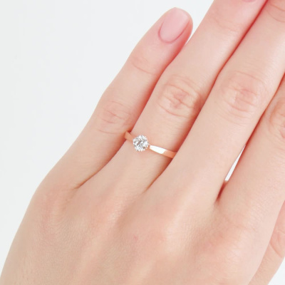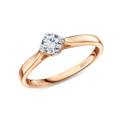 Кольцо с 1 бриллиантом природным, 0.32 карат, огранка круг 57 граней, цвет 3, чистота 6, тип огранки А; Розовое золото 585 пробы.
