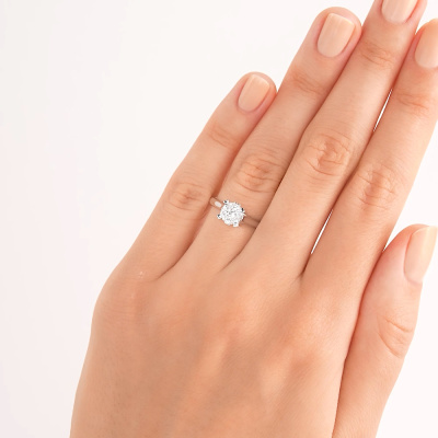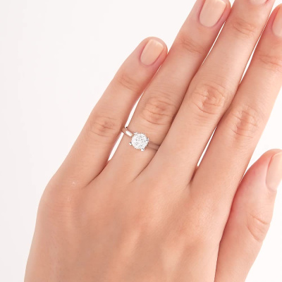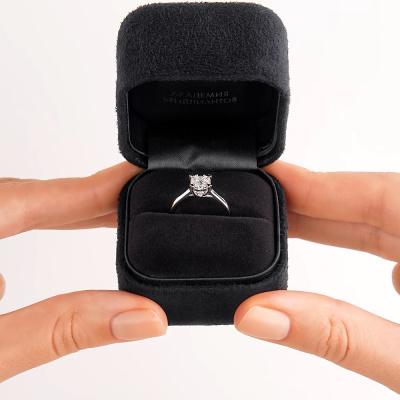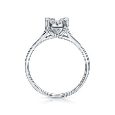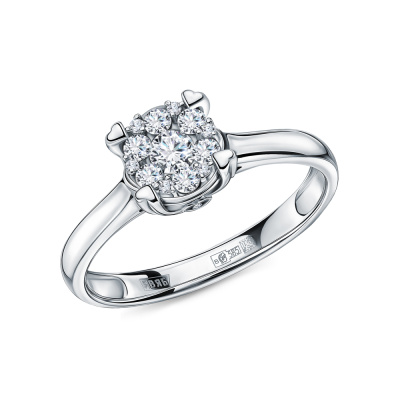 Кольцо с 1 бриллиантом природным, 0.07 карат, огранка круг 57 граней, цвет 3, чистота 6, тип огранки А; 6 бриллиантами природными, 0.12 карат, огранка круг 57 граней, цвет 3, чистота 6, тип огранки А; 6 бриллиантами природными, 0.01 карат, огранка круг 17 граней, цвет 2, чистота 2, тип огранки А; 2 бриллиантами природными, 0.004 карат, огранка круг 17 граней, цвет 2, чистота 2, тип огранки Б; Белое золото 585 пробы.
