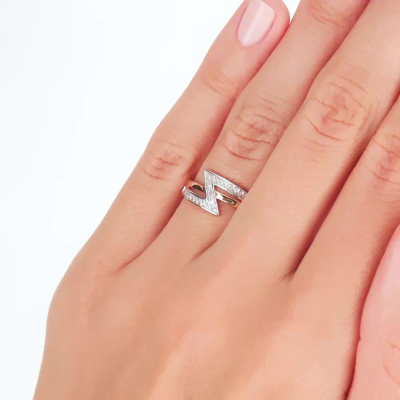 Кольцо с 27 бриллиантами природными, 0.08 карат, огранка круг 17 граней, цвет 2, чистота 2, тип огранки А; Розовое золото 585 пробы.