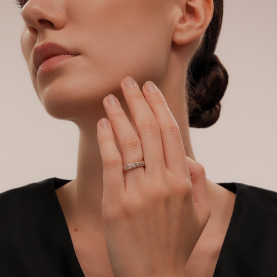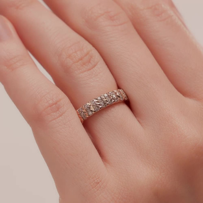 Кольцо с 30 бриллиантами природными, 0.14 карат, огранка круг 17 граней, цвет 2, чистота 2, тип огранки А; Розовое золото 585 пробы.