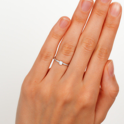 Кольцо с 1 бриллиантом природным, 0.01 карат, огранка круг 57 граней, цвет 3, чистота 6, тип огранки А; 16 бриллиантами природными, 0.03 карат, огранка круг 17 граней, цвет 2, чистота 2, тип огранки А; Розовое и белое золото 585 пробы.