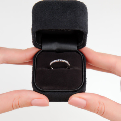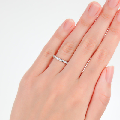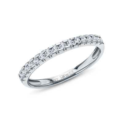Кольцо с 15 бриллиантами природными, 0.17 карат, огранка круг 57 граней, цвет 3, чистота 6, тип огранки А; Белое золото 585 пробы.