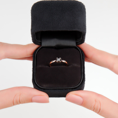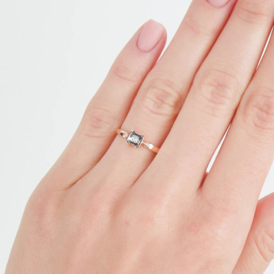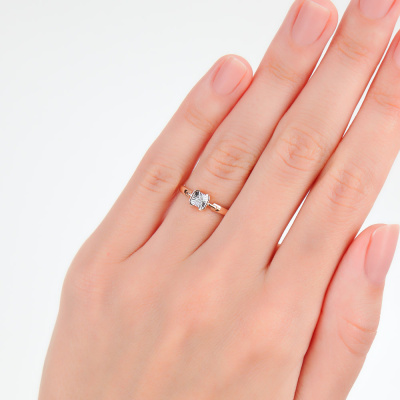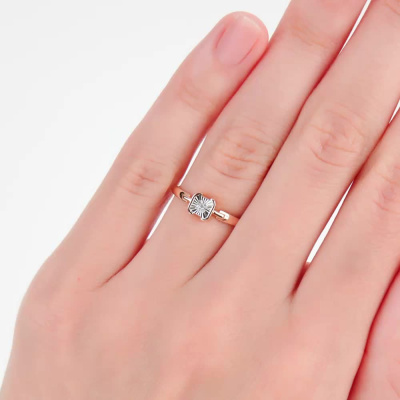 Кольцо с 4 бриллиантами природными, 0.01 карат, огранка круг 17 граней, цвет 2, чистота 2, тип огранки А; Розовое и белое золото 585 пробы.