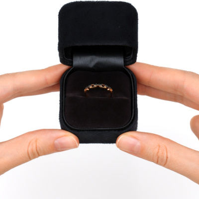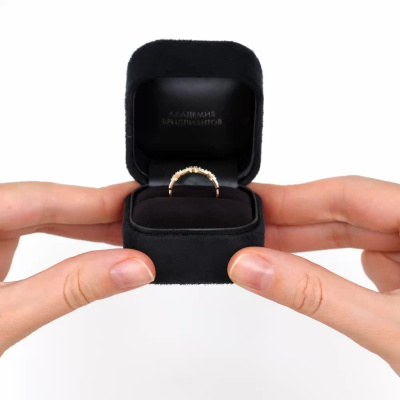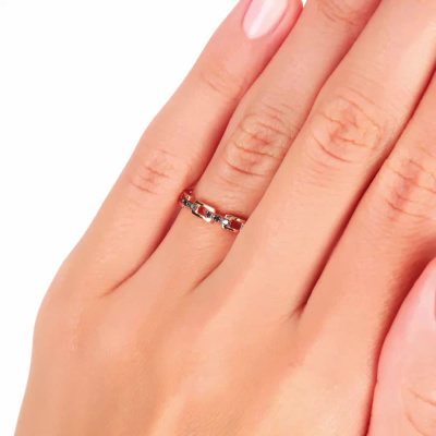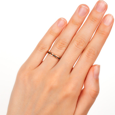 Кольцо с 9 бриллиантами черными природными облагороженными, 0.06 карат, огранка круг 57 граней, цвет 7, чистота 6, тип огранки А; Розовое золото 585 пробы.
