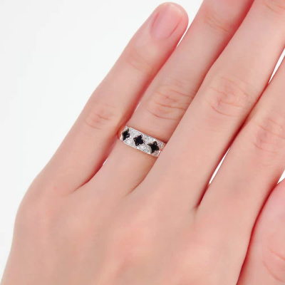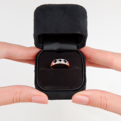 Кольцо с 12 бриллиантами природными, 0.05 карат, огранка круг 17 граней, цвет 2, чистота 2, тип огранки А; 3 сапфирами природными, 0.34 карат, цвет 2, чистота 2, тип огранки В; Розовое золото 585 пробы.