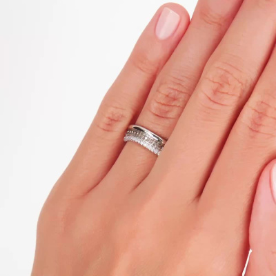 Кольцо с 23 бриллиантами природными, 0.1 карат, огранка круг 57 граней, цвет 3, чистота 6, тип огранки А; 23 бриллиантами коньячными природными, 0.1 карат, огранка круг 57 граней, цвет 7, чистота 6, тип огранки А; Белое золото 585 пробы.