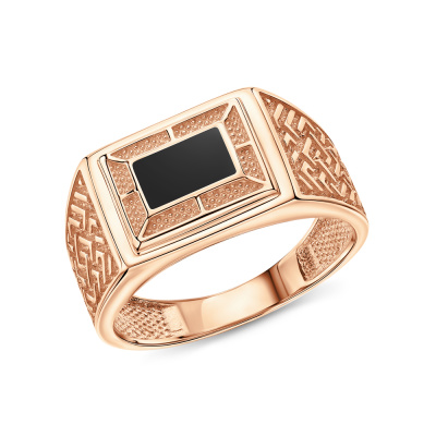 Кольцо, вставка: эмаль черная; Розовое золото 585 пробы.