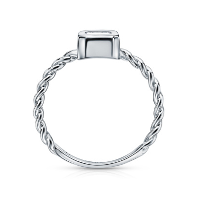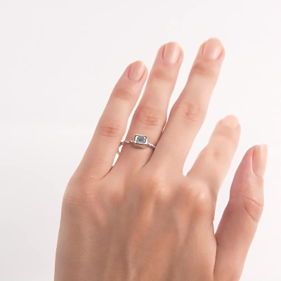 Кольцо с 1 бриллиантом выращенным, 0.55 карат, огранка изумрудная 65 граней, цвет 4, чистота 5, тип огранки А; Белое золото 585 пробы.