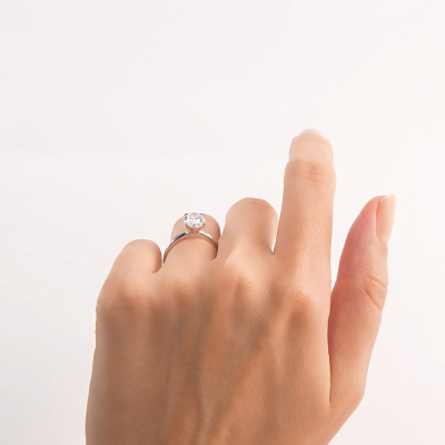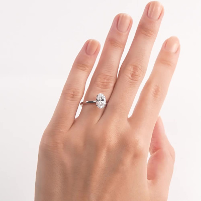 Кольцо с 1 бриллиантом выращенным, 1.8 карат, огранка овал 57 граней, цвет 4, чистота 5, тип огранки А; Белое золото 585 пробы.