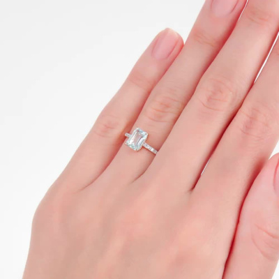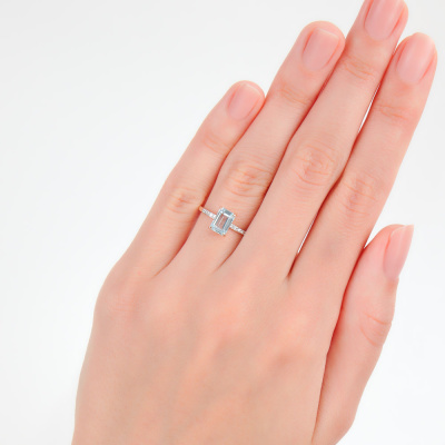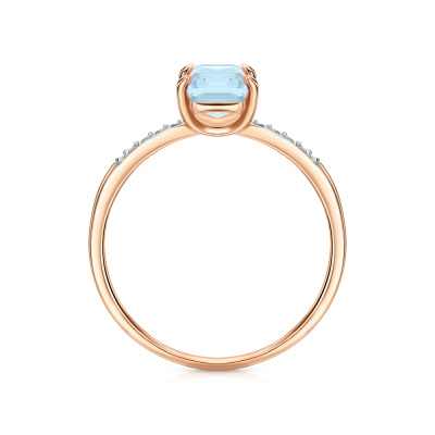 Кольцо с 8 бриллиантами природными, 0.03 карат, огранка круг 17 граней, цвет 2, чистота 2, тип огранки А; 1 топазом скай природным, 1.18 карат; Розовое золото 585 пробы.