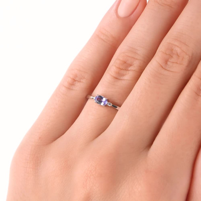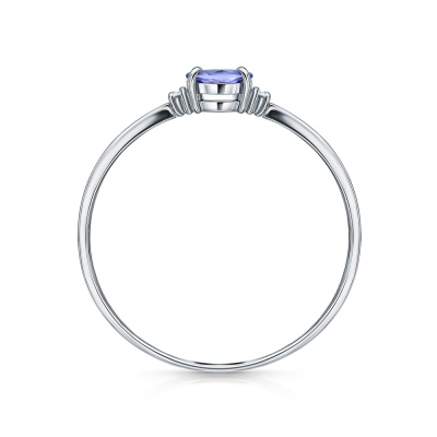 Кольцо с 2 бриллиантами природными, 0.01 карат, огранка круг 57 граней, цвет 3, чистота 6, тип огранки А; 1 танзанитом природным, 0.27 карат; Белое золото 585 пробы.