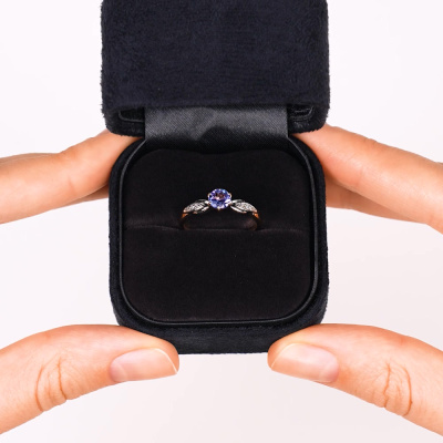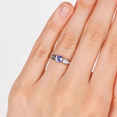 Кольцо с 6 бриллиантами природными, 0.02 карат, огранка круг 17 граней, цвет 2, чистота 2, тип огранки А; 1 танзанитом природным, 0.51 карат; Розовое золото 585 пробы.