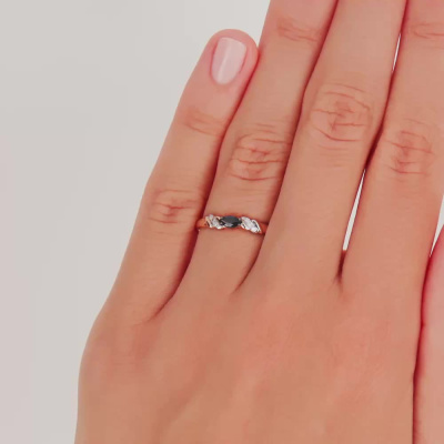 Кольцо с 6 бриллиантами природными, 0.02 карат, огранка круг 17 граней, цвет 2, чистота 2, тип огранки А; 1 сапфиром природным, 0.2 карат, цвет 2, чистота 2, тип огранки Б; Розовое золото 585 пробы.