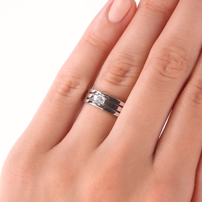 Кольцо с 1 бриллиантом природным, 0.03 карат, огранка круг 57 граней, цвет 3, чистота 6, тип огранки А; Платина 950 пробы.