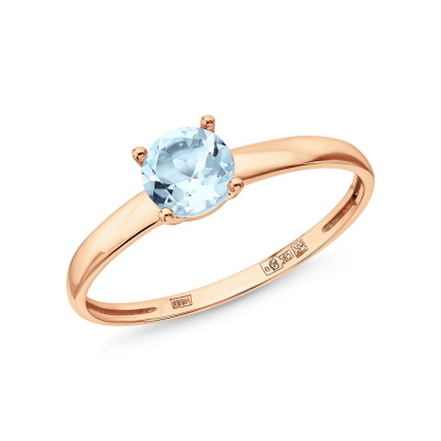 Кольцо с 1 топазом скай природным, 0.61 карат; Розовое золото 585 пробы.