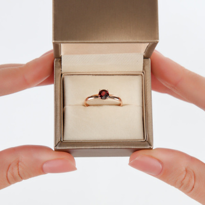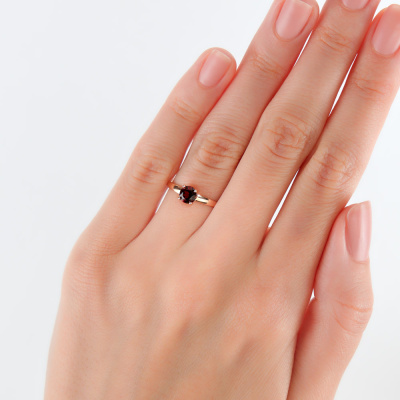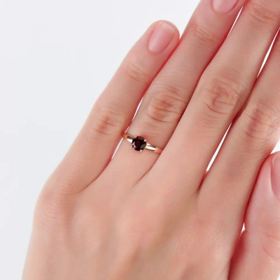 Кольцо с 1 гранатом природным, 0.62 карат; Розовое золото 585 пробы.