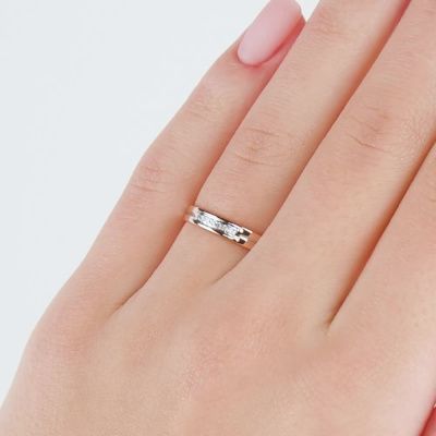 Кольцо с 7 бриллиантами природными, 0.03 карат, огранка круг 57 граней, цвет 3, чистота 7, тип огранки А; Розовое золото 585 пробы.