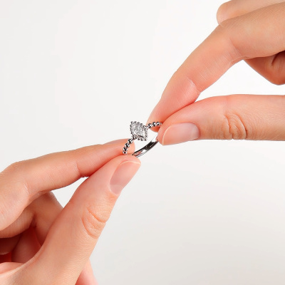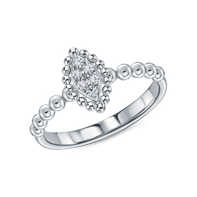 Кольцо с 6 бриллиантами выращенными, 0.09 карат, огранка круг 57 граней, цвет 3, чистота 5; Серебро 925 пробы.