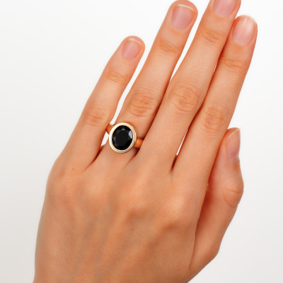 Золотое кольцо с бриллиантами природными и гранатами природными