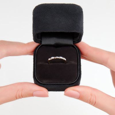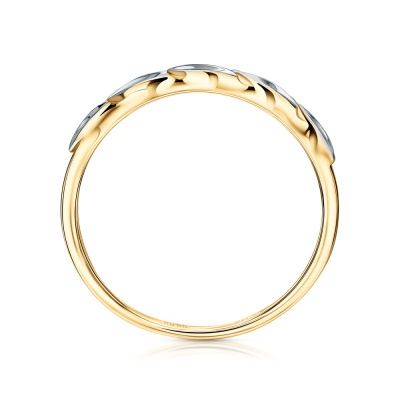 Кольцо с 5 бриллиантами природными, 0.02 карат, огранка круг 17 граней, цвет 2, чистота 2, тип огранки А; Желтое золото 585 пробы.