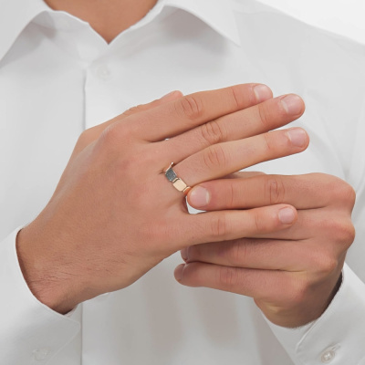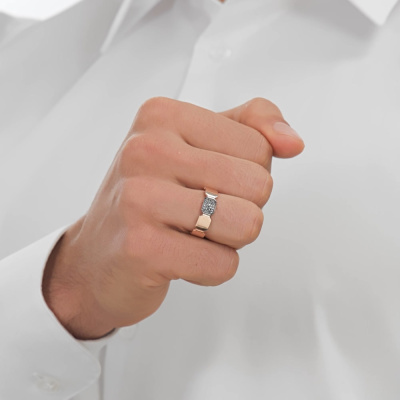 Кольцо с 30 бриллиантами черными природными облагороженными, 0.078 карат, огранка круг 57 граней, цвет 7, чистота 6, тип огранки А; Розовое золото 585 пробы.