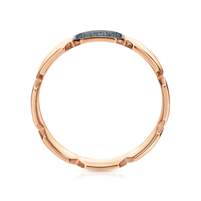 Кольцо с 30 бриллиантами черными природными облагороженными, 0.07 карат, огранка круг 57 граней, цвет 7, чистота 6, тип огранки А; Розовое золото 585 пробы.