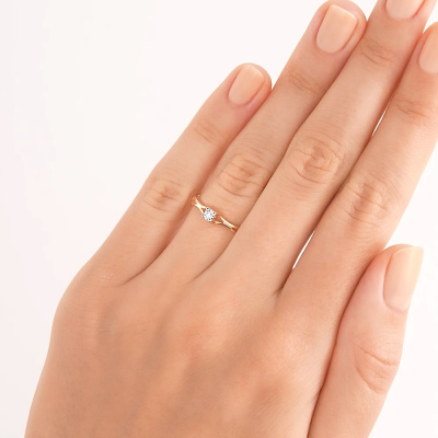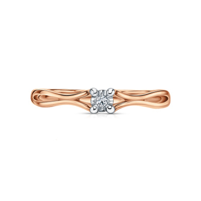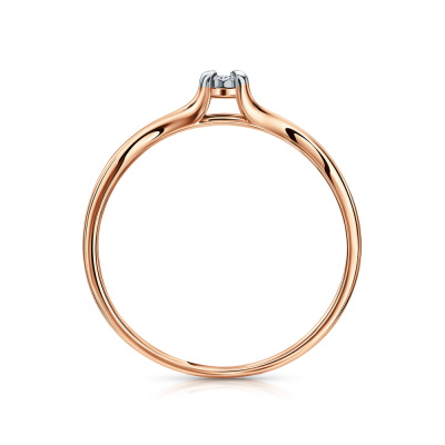 Кольцо с 1 бриллиантом природным, 0.01 карат, огранка круг 57 граней, цвет 3, чистота 6; Розовое и белое золото 375 пробы.