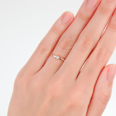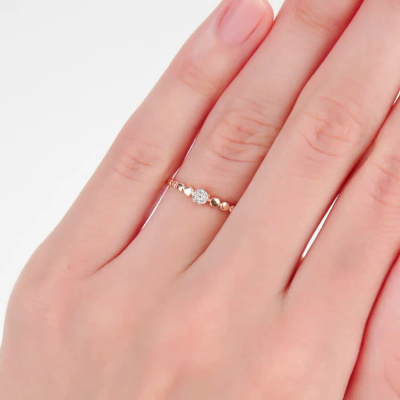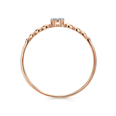 Кольцо с 7 бриллиантами природными, 0.02 карат, огранка круг 17 граней, цвет 2, чистота 2; Розовое золото 375 пробы.