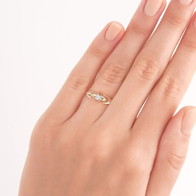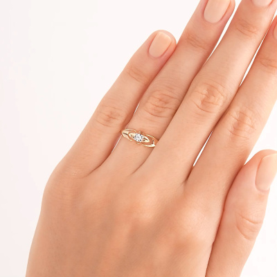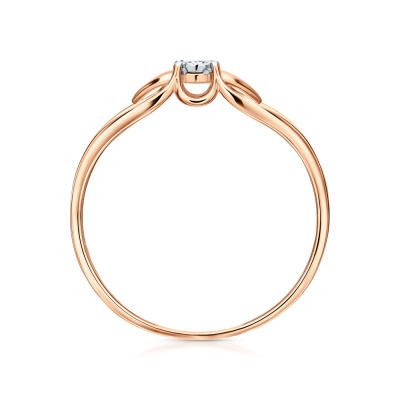 Кольцо с 1 бриллиантом природным, 0.02 карат, огранка круг 57 граней, цвет 3, чистота 6; Розовое и белое золото 375 пробы.