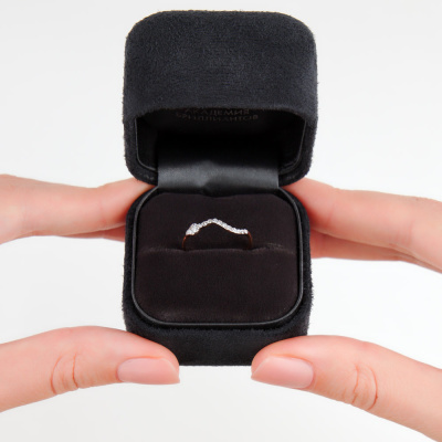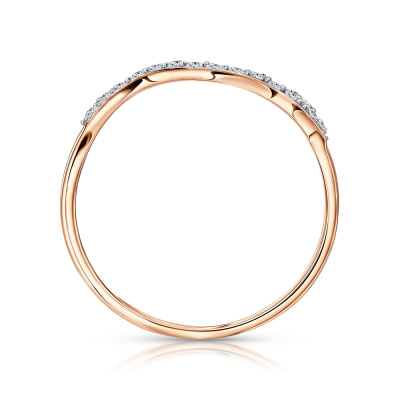 Кольцо с 16 бриллиантами природными, 0.14 карат, огранка круг 17 граней, цвет 2, чистота 2, тип огранки А; Розовое золото 585 пробы.