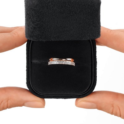 Кольцо с 51 бриллиантом природным, 0.24 карат, огранка круг 17 граней, цвет 2, чистота 2, тип огранки А; Розовое золото 585 пробы.