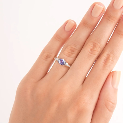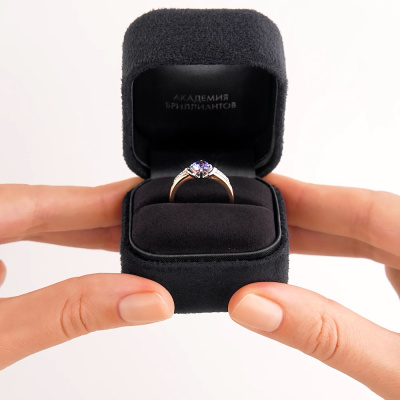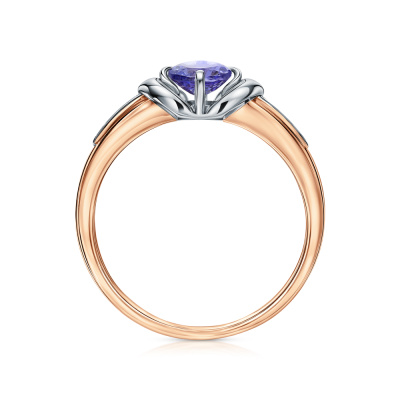 Кольцо с 6 бриллиантами природными, 0.02 карат, огранка круг 17 граней, цвет 2, чистота 2, тип огранки А; 1 танзанитом природным, 0.53 карат; Розовое золото 585 пробы.