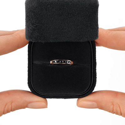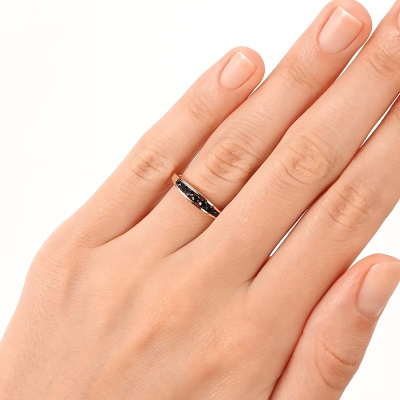Кольцо с 3 сапфирами черными природными, 0.176 карат; 2 сапфирами черными природными, 0.087 карат; 2 сапфирами черными природными, 0.059 карат; Розовое золото 585 пробы.