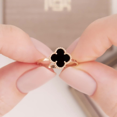 Кольцо с 1 ониксом черным природным, 0.72 карат; Розовое золото 585 пробы.