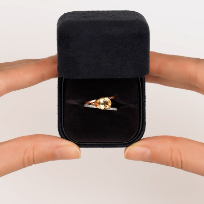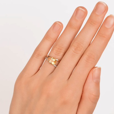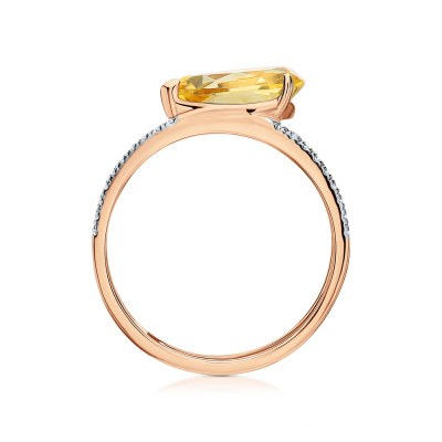 Кольцо с 19 бриллиантами природными, 0.07 карат, огранка круг 17 граней, цвет 2, чистота 2, тип огранки А; 1 цитрином природным, 1.63 карат; Розовое золото 585 пробы.