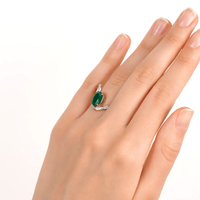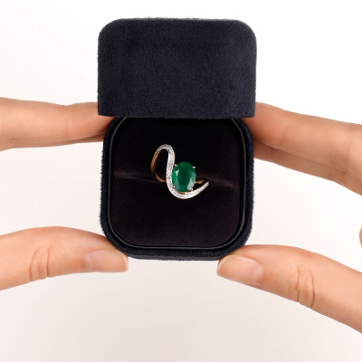 Кольцо с 38 бриллиантами природными, 0.15 карат, огранка круг 17 граней, цвет 2, чистота 2, тип огранки А; 1 агатом зеленым природным; Розовое золото 585 пробы.