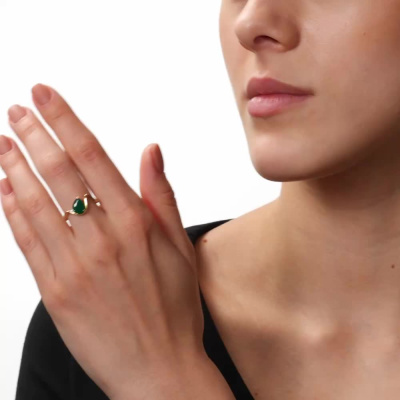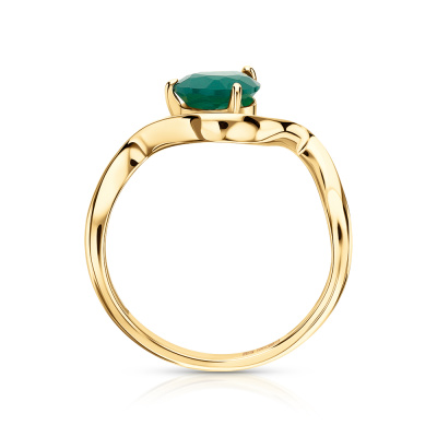 Кольцо с 1 бриллиантом природным, 0.007 карат, огранка круг 17 граней, цвет 2, чистота 2, тип огранки А; 1 агатом зеленым природным; Желтое золото 585 пробы.
