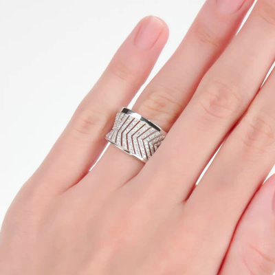 Кольцо с 193 бриллиантами природными, 0.72 карат, огранка круг 17 граней, цвет 2, чистота 3, тип огранки А; Белое золото 585 пробы.