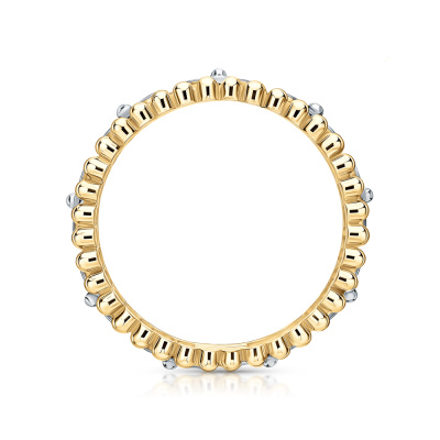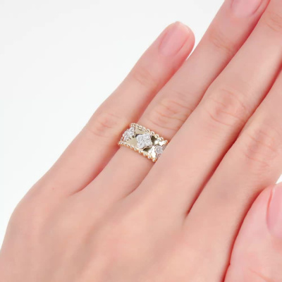 Кольцо с 36 бриллиантами природными, 0.14 карат, огранка круг 17 граней, цвет 2, чистота 3, тип огранки А; Желтое и белое золото 585 пробы.