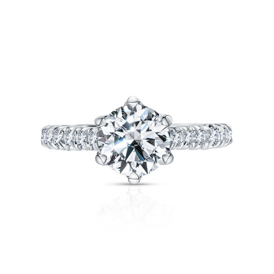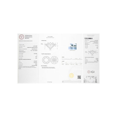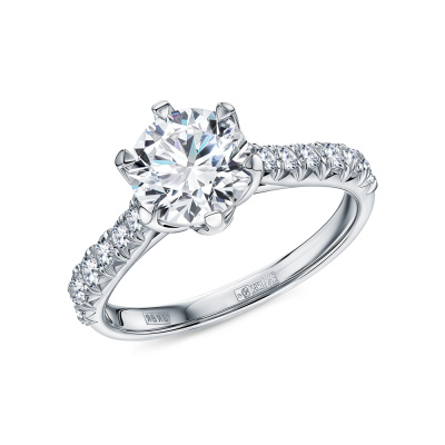 Кольцо с 1 бриллиантом выращенным, 1.5 карат, огранка круг 57 граней, цвет 4, чистота 5, тип огранки А; 6 бриллиантами выращенными, 0.19 карат, огранка круг 57 граней, цвет 3, чистота 5, тип огранки А; 6 бриллиантами выращенными, 0.12 карат, огранка круг 57 граней, цвет 3, чистота 5, тип огранки А; 6 бриллиантами выращенными, 0.03 карат, огранка круг 57 граней, цвет 3, чистота 5, тип огранки А; Белое золото 585 пробы.