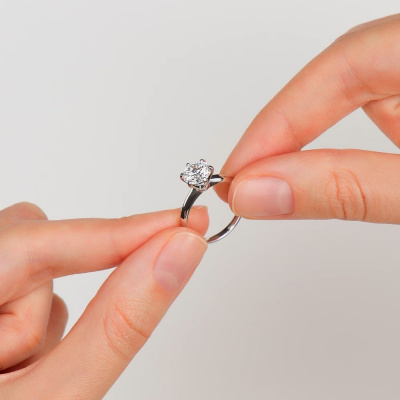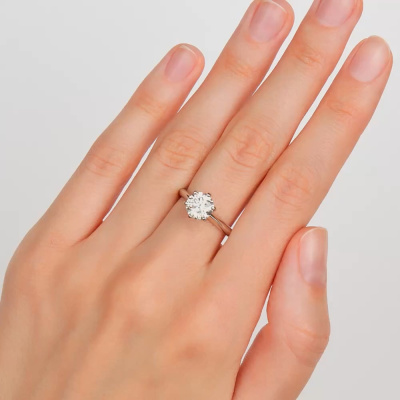 Кольцо с 1 бриллиантом выращенным, 1.54 карат, огранка круг 57 граней, цвет 4, чистота 5, тип огранки А; Белое золото 585 пробы.