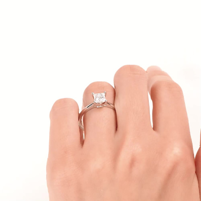 Кольцо с 1 бриллиантом выращенным, 1.01 карат, огранка принцесса 65 граней, цвет 4, чистота 5, тип огранки А; Белое золото 585 пробы.