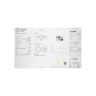 Кольцо с 1 бриллиантом выращенным, 1.01 карат, огранка круг 57 граней, цвет 4, чистота 5, тип огранки А; Белое золото 585 пробы.