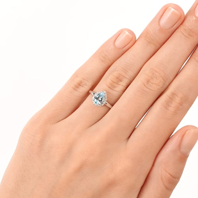 Кольцо с 13 бриллиантами природными, 0.05 карат, огранка круг 17 граней, цвет 2, чистота 2, тип огранки А; 1 топазом скай природным, 0.8 карат; Белое золото 585 пробы.