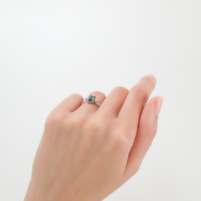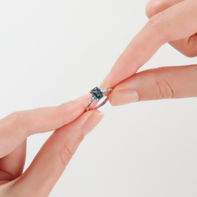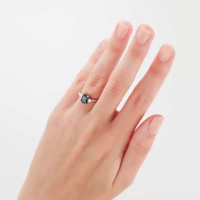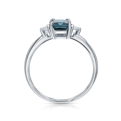 Кольцо с 1 топазом лондон природным, 1.15 карат; 2 бриллиантами выращенными, 0.14 карат, огранка круг 57 граней, цвет 3, чистота 5, тип огранки А; Белое золото 585 пробы.