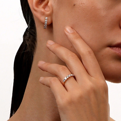 Кольцо с 7 бриллиантами выращенными, 0.8 карат, огранка круг 57 граней, цвет 3, чистота 5, тип огранки А; Розовое золото 585 пробы.