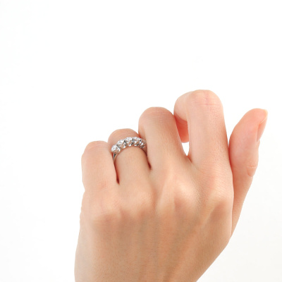 Кольцо с 5 бриллиантами выращенными, 0.88 карат, огранка круг 57 граней, цвет 3, чистота 5, тип огранки А; Белое золото 585 пробы.