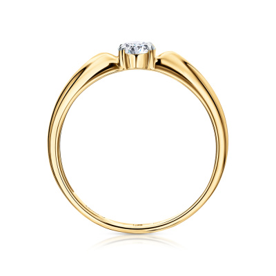 Кольцо с 1 бриллиантом выращенным, 0.22 карат, огранка круг 57 граней, цвет 3, чистота 5, тип огранки А; Желтое золото 585 пробы.