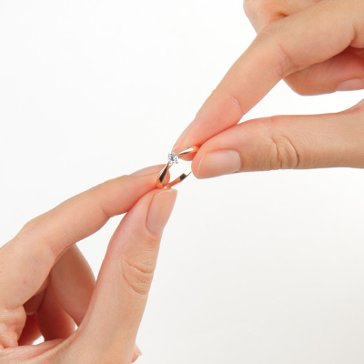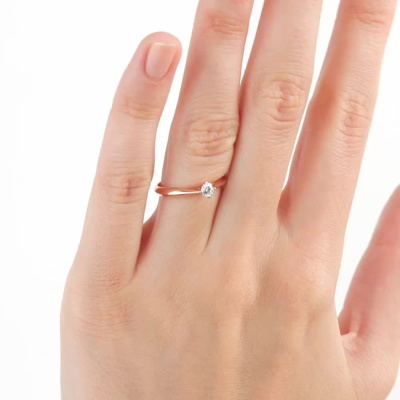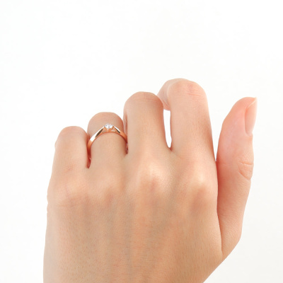 Кольцо с 1 бриллиантом выращенным, 0.14 карат, огранка круг 57 граней, цвет 3, чистота 5, тип огранки А; Розовое золото 585 пробы.